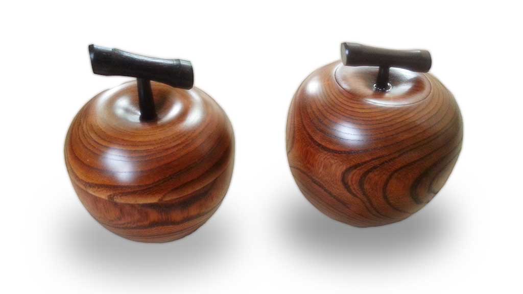 [사진 설명 : 대구를 상징하는 사과를 표현한 차통입니다. 전통칠기인 옷칠을 이용하여 만들었습니다.]